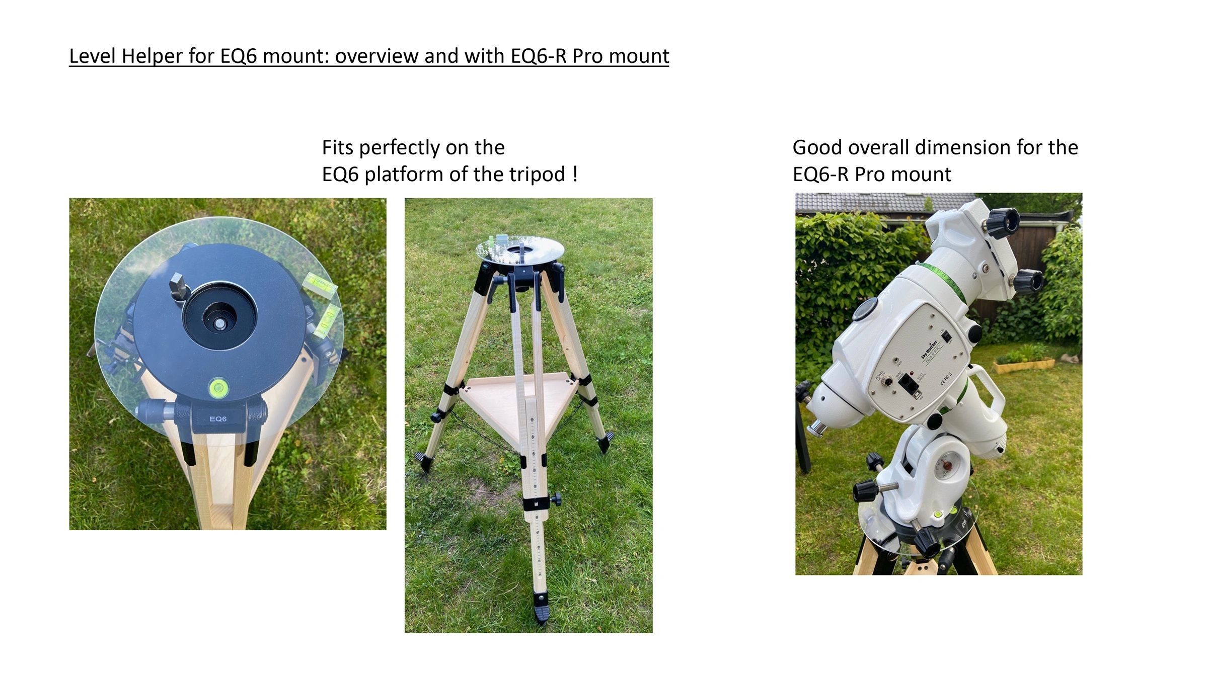 To my friends in Hannover Germany, Miriam and Frank, who helped me develop the Level Helper for the EQ5 and EQ6 Mounts.